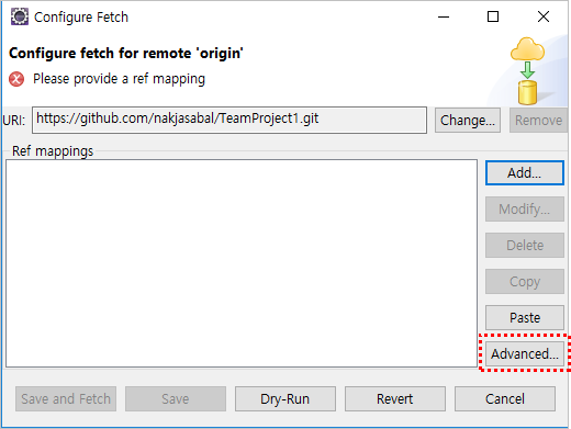 빨간색 네모 부분을 우클릭하여 Configure Fetch 를 클릭한다.
