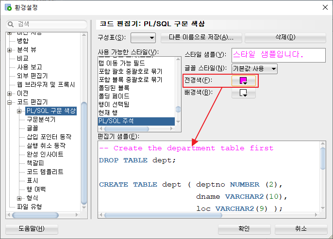 코드편집기 ⇒ PL/SQL 구문색상