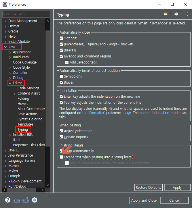 [ Eclipse ] 쌍따옴표 사이에 붙여넣기할때 역슬래시가 자동으로 붙는 현상 처리 본문