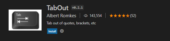 VSCode 유용한 확장 프로그램 - 탭키로 괄호나 쌍따옴표 탈출하기 TabOut 본문