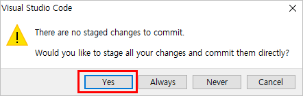 커밋이 완료되면 아래와 같이 Changes 부분이 비워진다.
