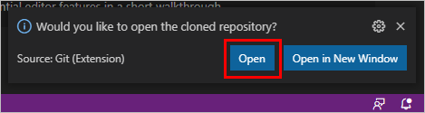 클론이 완료되면 해당 디렉토리를 오픈할지 물어본다. Open을 클릭한다.