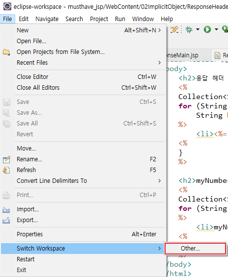이클립스 워크스페이스 변경하기 본문