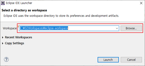 디렉토리 선택창이 뜨면 경로 설정 후 Launch 클릭