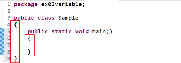 이클립스를 처음 설치하면 중괄호(브레이스)의 위치가 아래와 같이 설정되어 있다.