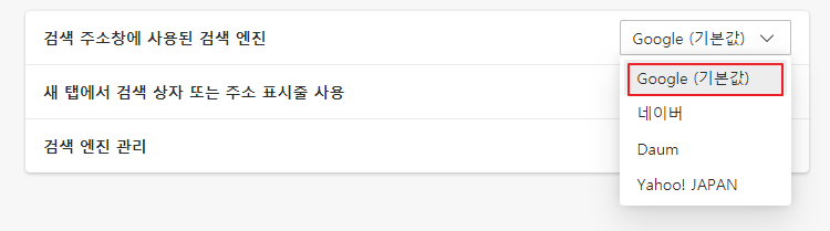 엣지 (edge) 기본 검색 엔진 변경하기 본문